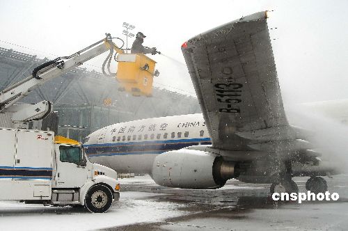 中國南方遭遇罕見的冰雪災(zāi)害,中國南方航空公司六萬員工目前正奮戰(zhàn)在冰雪一線。中新社發(fā) 郭軍 攝