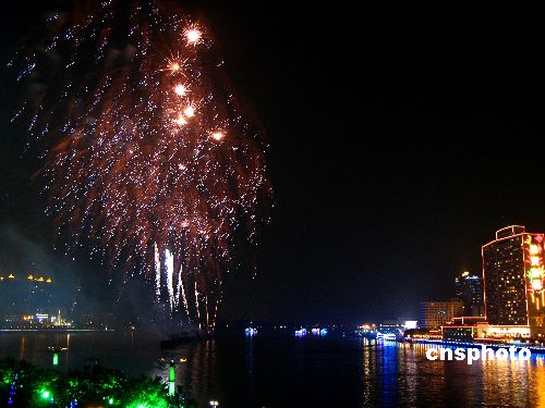 2月7日晚20點(diǎn)30分至21點(diǎn),2008年廣州市春節(jié)焰火晚會(huì)在珠江河段白鵝潭江面舉行。廣州市民及留守外來(lái)工一早就前往白鵝潭及珠江岸邊等候欣賞煙花美景。據(jù)了解,本次焰火晚會(huì)首次采用了全新的情景劇式音樂(lè)敘事燃放模式,采用高科技手段,突出嶺南文化。中新社發(fā) 呂明/吳呂明 攝