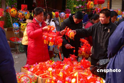 2月13日,人們在河南開封市大相國寺市場選購花燈。農(nóng)歷正月十五臨近,古城開封市各種生肖動物、奧運(yùn)福娃等圖形的燈籠紛紛上市,喜迎元宵佳節(jié)。中新社發(fā) 凱楓 攝