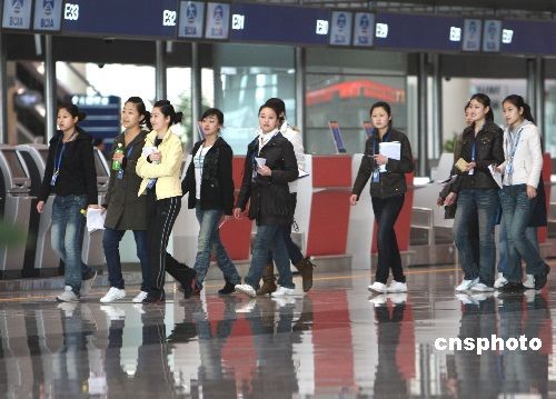 作為北京奧運(yùn)會(huì)重點(diǎn)工程之一的北京首都國際機(jī)場(chǎng)3號(hào)航站樓將于2月29日正式啟用,來自中國各地的大批靚麗女員工在新航站樓準(zhǔn)備上崗。中新社發(fā) 趙振清 攝