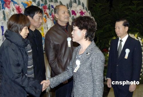 2月28日,著名作家浩然的遺體告別儀式在北京八寶山革命公墓舉行,中國(guó)作家協(xié)會(huì)主席鐵凝(右二)及作協(xié)黨組書(shū)記、副主席金炳華(右一)前往送別。浩然本名梁金廣,其代表作有文革時(shí)期發(fā)表的長(zhǎng)篇小說(shuō)《艷陽(yáng)天》、《金光大道》等。中新社發(fā) 徐曦弋 攝