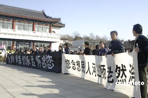 數(shù)百位專程從河北三河市趕來(lái)的市民打出悼念長(zhǎng)幅。