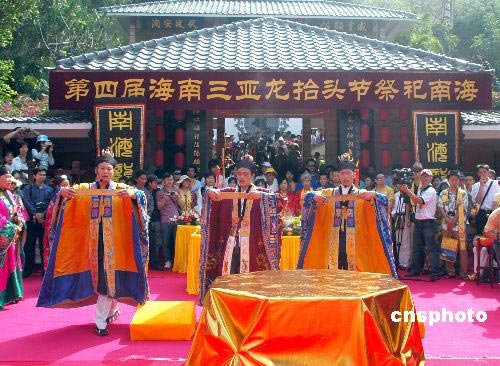 3月9日是中國(guó)農(nóng)歷二月初二,民間傳統(tǒng)的龍?zhí)ь^節(jié),中國(guó)各地都有不同的習(xí)俗祭龍祈福。海南因四面環(huán)海,百姓對(duì)此節(jié)日更顯重視。第四屆海南三亞龍?zhí)ь^節(jié)祭祀南海暨三亞“藍(lán)絲帶”海洋保護(hù)海南行首發(fā)式當(dāng)天在三亞南山大小洞天景區(qū)隆重舉行。人們舉行莊嚴(yán)的道教儀式祭祀南海與南海龍王,祈禱風(fēng)調(diào)雨順,國(guó)泰民安。中新社發(fā) 尹海明 攝