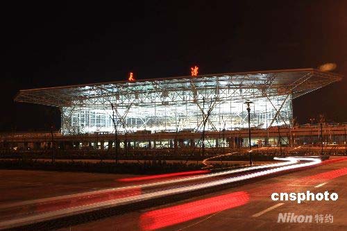 4月28日零時(shí),2008年北京奧運(yùn)會(huì)主降機(jī)場(chǎng)之一和首都機(jī)場(chǎng)第一備降機(jī)場(chǎng)——天津?yàn)I海國(guó)際機(jī)場(chǎng)新航站樓正式啟用。據(jù)機(jī)場(chǎng)負(fù)責(zé)人介紹,北京奧運(yùn)會(huì)期間,從該機(jī)場(chǎng)進(jìn)出港的奧運(yùn)官員、運(yùn)動(dòng)員及中外旅客預(yù)計(jì)超過(guò)三十萬(wàn)人次。中新社發(fā) 段毅剛 攝