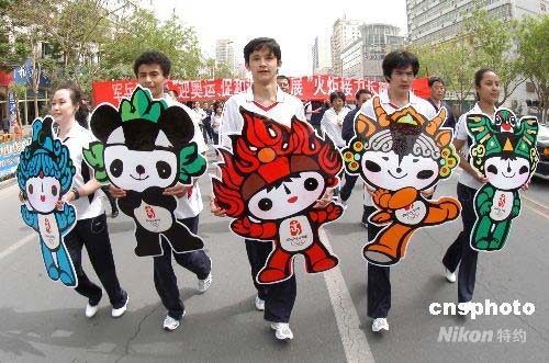 4月30日上午,新疆巴州舉行萬人火炬拉力長跑活動,迎接奧運(yùn)倒計(jì)時(shí)100天。由部隊(duì)、兵團(tuán)、油田、鐵路和地方組成的萬人火炬拉力長跑隊(duì)伍參加了全程11公里的火炬拉力長跑活動。中新社發(fā) 確·胡熱 攝