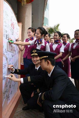 4月30日,北京奧運(yùn)會(huì)倒計(jì)時(shí)100天,四川航空公司100多名職工用簽名書寫祝愿的方式,表達(dá)對(duì)北京奧運(yùn)會(huì)的祝愿與期許。中新社發(fā) 葛振林 攝