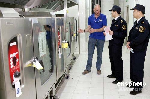 近日,北京海關在媒體村對一批奧運物資進行現(xiàn)場驗放。該批物資為奧運會所需的廚房設備,共計3個集裝箱。北京海關組織24小時的現(xiàn)場支持,到運動員村,媒體村,國際廣播中心和新聞媒體中心等各個現(xiàn)場對貨物進行查驗。中新社發(fā) 雷虹 攝