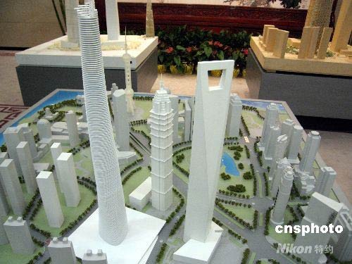 5月7日,上海有關(guān)部門發(fā)布最新環(huán)境評(píng)價(jià)公示信息,證實(shí)上海擬于2008年年內(nèi)開建高達(dá)580米的超高層建筑“上海中心”大廈。這意味著,該建筑將超過492米的上海環(huán)球金融中心和508米的臺(tái)北“一○一大樓”,一躍成為“中國第一高樓”。圖為“上海中心”大廈項(xiàng)目建筑設(shè)計(jì)的兩大備選方案之一“龍形”(見圖)及周邊環(huán)境模型。中新社發(fā) 許曉青 攝