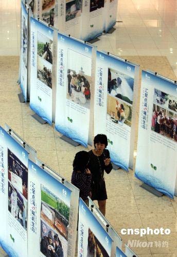 5月1日至5月11日,新中關(guān)購(gòu)物中心為期11天的“2008大愛(ài)無(wú)疆·母親水窖”活動(dòng)旨在動(dòng)員廣泛的社會(huì)力量,關(guān)注西部,關(guān)注貧困,關(guān)注缺水地區(qū)的母親和兒童,幫助他們建更多的“母親水窖”。同時(shí),“大地之愛(ài)·母親水窖”攝影展舉辦,多幅圖片真實(shí)記錄下了西部地區(qū)缺水、貧困的震撼場(chǎng)面,也向人們展示了“大地之愛(ài)·母親水窖”從成立到現(xiàn)在所走過(guò)的歷程,以及“母親水窖”建成后對(duì)于當(dāng)?shù)厝罕娚畹挠绊。中新社發(fā) 楊可佳 攝