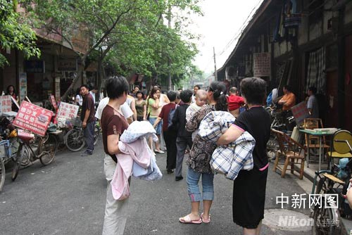圖為成都地震發(fā)生后居民們迅速跑出所住房屋。 黃榮 攝