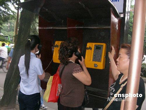 5月12日下午14時27分,四川汶川縣發(fā)生7.8級地震,成都市民在公用電話前排隊,焦急地向家人報平安! ≈行律绨l(fā) 楊杰 攝