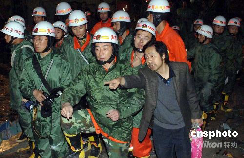 四川汶川縣5月12日發(fā)生7.8級地震后,北川縣北川中學受到極大的迫害,將近三千名的學生中僅有一半學生生存,另一部分學生因樓房倒塌而遇難或受傷。抗震消防隊員不顧艱險連續(xù)工作,利用不同工具挖掘被壓人員,并及時成功搶救出一批學員。圖為綿陽一位建筑設計人員輔助施工人員進行搶險救災。中新社發(fā) 鄒憲 攝