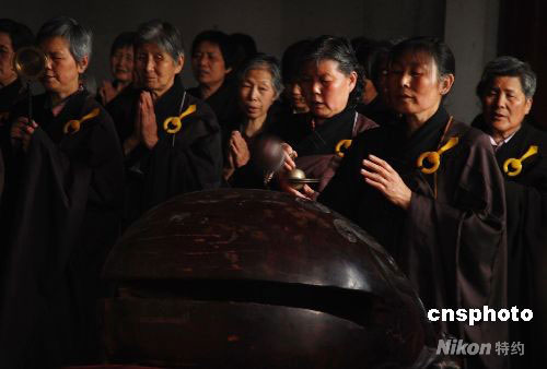 5月15日,江蘇無錫南禪寺舉行賑災(zāi)祈福吉祥法會(huì)。地震發(fā)生后,中國國家宗教局十三日立即向受災(zāi)地區(qū)捐款,同時(shí)向在北京的全國性宗教團(tuán)體等發(fā)出通知,號(hào)召他們緊急開展向地震災(zāi)區(qū)捐款活動(dòng)。中新社發(fā) 楊慧峰 攝