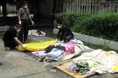 2008年5月16日,四川都江堰市蒲陽(yáng)路附近一個(gè)小區(qū),死者家屬在肅穆氣氛中為死者準(zhǔn)備出殯事宜,死亡者未能避開(kāi)5月12日中國(guó)汶川大地這場(chǎng)劫難,其遺體剛從地震廢墟中刨出。中新社發(fā) 鄒憲 攝