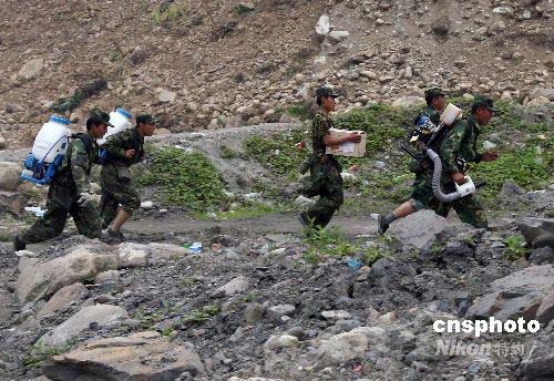圖:解放軍防疫部隊緊急進入汶川重災(zāi)區(qū)