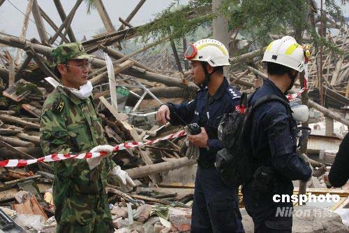 圖:四川官兵與新加坡國際救助隊救援