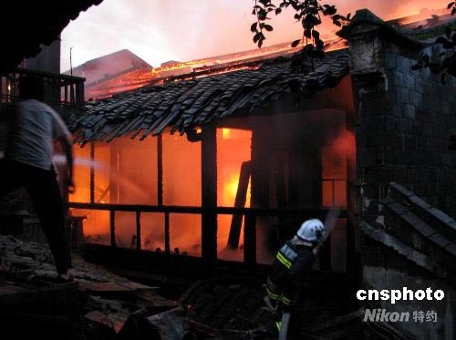 5月30日18時(shí)20分左右,福建寧德市醫(yī)院對(duì)面的木屋毗鄰區(qū)一民房發(fā)生火災(zāi),當(dāng)?shù)?0余名消防官兵經(jīng)過近2個(gè)小時(shí)的緊張撲救,終于將大火完全撲滅,所幸沒有造成人員傷亡。據(jù)悉,由于該地區(qū)民房多為木結(jié)構(gòu),且電線亂拉,存在嚴(yán)重的火災(zāi)隱患,今年1月24日,該地區(qū)也曾發(fā)生過大火,過火面積達(dá)600多平方米。目前火災(zāi)原因和損失還在進(jìn)一步調(diào)查中。中新社發(fā) 張彩林 攝