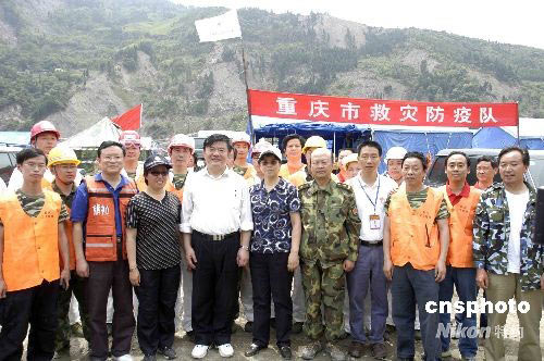 6月2日,中國衛(wèi)生部長陳竺到映秀視察抗震救災衛(wèi)生防疫工作,圖為陳竺在重慶衛(wèi)生防疫隊的駐地慰問衛(wèi)生防疫隊員。中新社發(fā) 肖邦忠 攝