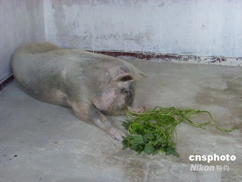 地震后被困36天,靠吃木炭,喝雨水,堅強(qiáng)活下來而紅遍網(wǎng)絡(luò)的地震奇跡創(chuàng)造者“豬堅強(qiáng)”。目前在位于成都市大邑縣的建川博物館健康生活。中新社發(fā) 霍潺 攝