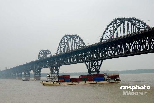 受第6號(hào)臺(tái)風(fēng)“風(fēng)神”影響,江西省連日遭強(qiáng)降雨襲擊,導(dǎo)致長(zhǎng)江江西九江段水位持續(xù)上漲。6月27日,一艘大型貨輪通過九江長(zhǎng)江大橋時(shí),水位到達(dá)17.3米。雖然距離警戒水位20米還有一定的距離,但由于上游長(zhǎng)時(shí)間的降雨,長(zhǎng)江江西九江段的水位目前正以每天20厘米的高度上漲。九江市各相關(guān)部門已經(jīng)做好準(zhǔn)備隨時(shí)應(yīng)對(duì)各種突發(fā)事件。中新社發(fā) 胡國林 攝