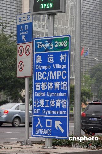 圖:奧運(yùn)專用指路標(biāo)識(shí)亮相北京街頭