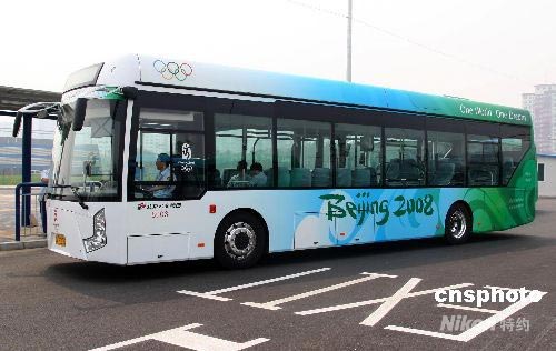 7月7日,專門為北京奧運(yùn)會(huì)運(yùn)動(dòng)員、隨隊(duì)官員和注冊(cè)記者提供出行服務(wù)的1200輛奧運(yùn)公交車,開(kāi)始分批進(jìn)入奧運(yùn)村運(yùn)行。這些車輛均為12米長(zhǎng)的低地板無(wú)障礙空調(diào)新車,是尾氣排放達(dá)到歐IV標(biāo)準(zhǔn)的柴油車或純天然氣車、純電動(dòng)車。圖為北京奧運(yùn)純電力公交車。中新社發(fā) 富田 攝