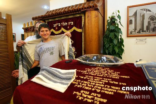 與父母一起到北京觀看奧運(yùn)會(huì)的13歲美國(guó)少年依斯科,8月12日在北京猶太人中心精心準(zhǔn)備即將到來的成人禮儀式,他表示能夠在中國(guó)度過這個(gè)特別的日子格外興奮。 中新社發(fā) 王瑤 攝