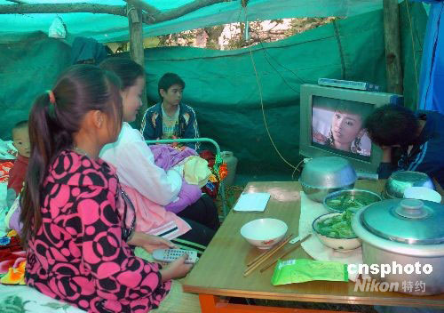 9月1日,經(jīng)過兩天的緊急救援,大批救援物資陸續(xù)到達(dá)四川省攀枝花地震災(zāi)區(qū)。經(jīng)過相關(guān)部門緊張搶修,災(zāi)區(qū)通訊、電力等基礎(chǔ)設(shè)施也正在逐步恢復(fù)中。圖為攀枝花市順利村幾名兒童圍坐在防震棚中觀看電視節(jié)目。中新社發(fā) 劉子倩 攝