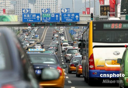 圖:單雙號限行解禁首日 北京市車流量驟增