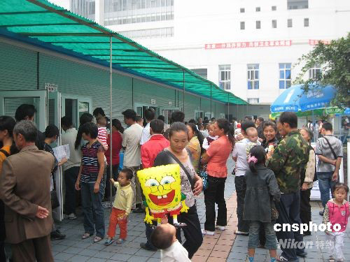 9月21日上午,首都-什邡對(duì)口支援醫(yī)療衛(wèi)生隊(duì)第二次向四川省什邡市人民醫(yī)院增派3名隊(duì)員,至此,該隊(duì)先后兩次共增派7名隊(duì)員支援該院,加上原在該院工作的3名隊(duì)員,共有10名首都醫(yī)療隊(duì)員幫助該院開展食用“問(wèn)題奶粉”的兒童篩查工作。 中新社發(fā) 張正尤 攝