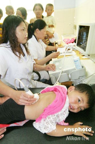 9月22日,自三鹿嬰幼兒奶粉等一批含有三聚氰胺的問題嬰幼兒奶粉暴光后,江蘇省贛榆縣迅速啟動(dòng)小兒腎結(jié)石診療綠色通道,各大醫(yī)院開辟從咨詢、診斷、檢查到住院等各個(gè)環(huán)節(jié)的專門場(chǎng)所,確!敖Y(jié)石寶寶”得到及時(shí)有效的救治。 中新社發(fā) 司偉 攝