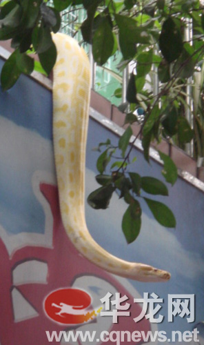 據(jù)江津區(qū)森林公安局一負(fù)責(zé)人介紹,這條蛇學(xué)名叫做黃金蟒,是一種變異蛇,屬于緬甸的引進(jìn)種,屬于國(guó)家的一類保護(hù)動(dòng)物。(見(jiàn)習(xí)記者何青枚 通訊員楊偉)