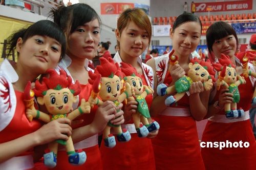 十月三十日,在福建泉州石獅市舉行的第六屆全國農(nóng)運會舞龍舞獅比賽頒獎現(xiàn)場,等待進行頒獎儀式的禮儀小姐身著富有中國情調(diào),色彩鮮麗的禮儀服飾令人眼前一亮。福建泉州石獅市有“服裝城”之稱,目前已躋身中國十大服裝批發(fā)市場之一。中新社發(fā) 鄭祚聲 攝