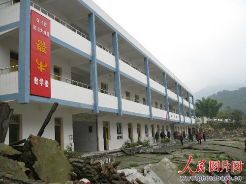 2008年10月,一批來(lái)自成都市的游客正在“5·12”汶川大地震“最!苯虒W(xué)樓地震遺跡內(nèi)參觀。據(jù)悉,“5·12”汶川大地震發(fā)生后,一條地震斷裂帶剛好從四川省彭州市白鹿鎮(zhèn)中心校校區(qū)內(nèi)穿過(guò),從而導(dǎo)致一棟新建教學(xué)樓被整體抬高近3米,樓體依然屹立原地不倒;而在其旁邊的教師宿舍完全垮塌,舊教學(xué)樓、辦公樓均成危房,與“長(zhǎng)高”的新教學(xué)樓相對(duì)10多米遠(yuǎn)、且在同一時(shí)間施工建設(shè)、同一地面高度的一棟四層新教學(xué)樓,成了鮮明的參照物。會(huì)“長(zhǎng)高”的教學(xué)樓便被當(dāng)?shù)厝朔Q作是:“5.12”汶川特大地震“最牛”的教學(xué)樓。彭州市相關(guān)部門(mén)特將此校教學(xué)樓地震遺跡作為旅游資源開(kāi)發(fā)利用。目前,每天都有二三百人的游客來(lái)此觀光“最牛”的教學(xué)樓地震遺跡。