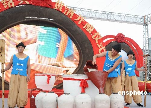 11月7日,2008中國紹興黃酒節(jié)在浙江紹興舉行。紹興是黃酒之鄉(xiāng),也是全球黃酒生產(chǎn)量最大的城市。目前全市有黃酒企業(yè)86家,年產(chǎn)量達到41.3萬噸、年銷售額33.2億元,分別占全國的17.2%和35.6%。紹興黃酒行業(yè)擁有7個中國馳名商標、4只中國名牌產(chǎn)品和6家中華老字號。今天展示的15家“紹興黃酒”冠名企業(yè),是其中的佼佼者,他們的總產(chǎn)量和銷售收入占據(jù)全市的90%。黃酒節(jié)期間,紹興將舉辦黃酒展覽會、黃酒開釀儀式,酒類趣味活動,黃酒品牌推廣文藝活動,黃酒品嘗活動以及院士紹興行和一系列經(jīng)貿(mào)文化活動等。中新社發(fā) 袁云 攝