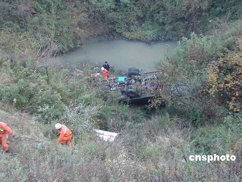 11月12日下午5時許,一輛從貴州省六盤水市駛往畢節(jié)地區(qū)威寧縣的貨車在102省道威寧縣境內(nèi)張家村一轉(zhuǎn)彎道突然失控,一頭將路邊的防護(hù)石墩撞垮,翻下50余米高的山谷,當(dāng)場造成2人受傷,1人遇難。中新社發(fā) 潘立遠(yuǎn) 攝