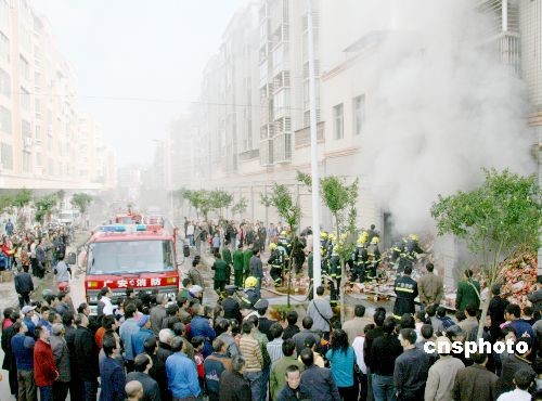 11月19日中午11點45分許,四川省廣安市 “康師傅”方便面廣安地區(qū)總代理的倉庫里價值60多萬的貨物被無情大火燒掉大半。事發(fā)后,廣安區(qū)公安分局110巡警大隊、市區(qū)消防大隊第一時間趕到現(xiàn)場,開展了滅火工作。據(jù)了解,失火的兩個門市面積大約有100平方米,里面裝了60多萬元的貨物,這次損失至少達40萬元左右;馂(zāi)原因正在調(diào)查之中。中新社發(fā) 廣宣 攝