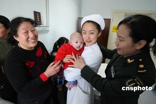 11月20日,二炮總醫(yī)院與美國(guó)“微笑列車”基金會(huì)達(dá)成合作協(xié)議,軍內(nèi)首個(gè)免費(fèi)為唇腭裂患者實(shí)施手術(shù)大型公益活動(dòng)正式啟動(dòng)。唇腭裂(俗稱兔唇、豁嘴兒)是最常見的先天畸形之一。美國(guó)“微笑列車”基金會(huì)是美籍華人王嘉廉先生于1999年在美國(guó)發(fā)起并正式注冊(cè)的非盈利性慈善組織,該組織的宗旨是免費(fèi)為唇腭裂患者實(shí)施矯治手術(shù)。目前“微笑列車”項(xiàng)目已為國(guó)內(nèi)萬(wàn)余名唇腭裂患者進(jìn)行了矯治手術(shù)。中新社發(fā) 任海霞 攝