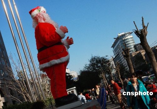 11月20日,可愛的“圣誕老人”北京街頭為來往的路人唱歌跳舞。雖然離圣誕節(jié)還有一個多月,但是北京的圣誕氣氛漸濃,許多商家開始裝飾門面,迎接“購物季”的到來,一場圣誕商戰(zhàn)正在悄然打響。中新社發(fā) 鄭雄增 攝