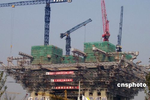 2008年11月25日,正在建設中的上海世博會中國館已初露雄姿,據(jù)悉計劃2009年年底竣工。 中新社發(fā) 周東潮 攝