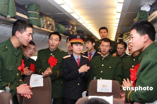11月25日至12月3日歷時9天的退伍老兵運輸工作在沈陽鐵路局圓滿結束。這個局嚴格執(zhí)行老兵運輸組織流程,周密布署運輸能力安排,調(diào)度指揮人員對老兵運輸列車運行重點掌握,對退武老兵還鄉(xiāng)買票、行李托運、進出站和中轉換乘實行四優(yōu)先并對老兵乘車就餐實行半價,受到退武兵的歡迎。中新社發(fā) 高山水 攝