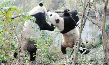 這對(duì)"金童玉女"何時(shí)繁衍后代,也成為人們關(guān)心的問(wèn)題。大熊貓團(tuán)團(tuán)、圓圓今年才四歲多,剛步入性成熟期,預(yù)計(jì)1-2年后就可列入繁殖計(jì)劃。"今年初,它們第一次出現(xiàn)了發(fā)情跡象。"飼養(yǎng)員高強(qiáng)說(shuō),在大熊貓的世界里,一到四歲的大熊貓為亞成體,四至五歲才進(jìn)入性成熟期,成為成年大熊貓,"結(jié)婚生子"也是在成年后才開(kāi)始,F(xiàn)在為了使團(tuán)團(tuán)、圓圓能自然交配成功,除了帶領(lǐng)它們跑圈鍛煉身體外,每天飼養(yǎng)員都會(huì)拿著窩窩頭、蘋(píng)果等引誘團(tuán)團(tuán),使其站立20分鐘左右,"大熊貓的自然交配能力已逐漸退化,交配時(shí),它的后肢必須承重整個(gè)身體,這么做是訓(xùn)練后肢力量。"