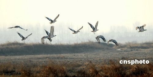 12月14日,120多只大鴇出現(xiàn)在河北滄州海興縣農(nóng)田中。大鴇屬國家一級重點保護動物,雖然分布很廣,但在世界范圍內(nèi)的種群數(shù)量都普遍處于下降趨勢。大鴇在我國的種群數(shù)量曾經(jīng)是相當豐富的,但近年來數(shù)量已經(jīng)變得相當稀少,估計目前總數(shù)僅有300—400只。據(jù)了解,這么大集群數(shù)量是近年來所罕見的。中新社發(fā) 王少華 攝