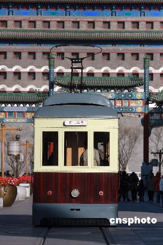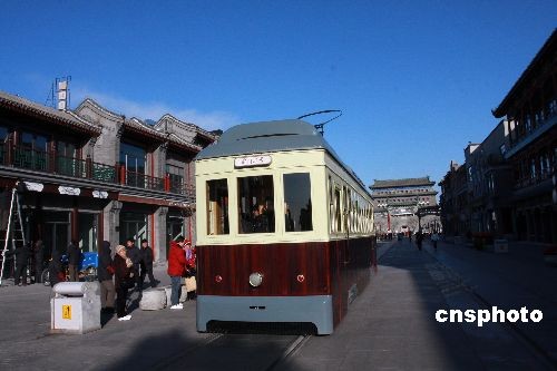 12月29日,北京前門大街“鐺鐺車”載客試運行,吸引不少游客的目光!拌K鐺車”已經(jīng)清洗一新,2009年元旦將正式開通迎客,那“鐺鐺”的聲音時隔50年后將再次回到煥然一新的前門大街,成為新北京的一大亮點。中新社發(fā) 鄭雄增 攝