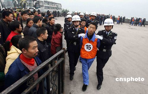 1月16日,重慶市公安局將30名扒手分別押至該市渝中區(qū)朝天門、菜園壩長途汽車站、渝北區(qū)龍頭寺汽車站等主城區(qū)4個人口密集地區(qū),請市民辨認和舉報。該市公安局方面稱,這些扒手幾乎都是慣扒,且全部是最近在他們作案時抓到的。之所以押到車站鬧市,是希望曾經失竊的市民現場辨認和舉報,同時也是警方對扒手作案現場的恢復、重建等系列案偵工作手段。中新社發(fā) 吳子敬 攝