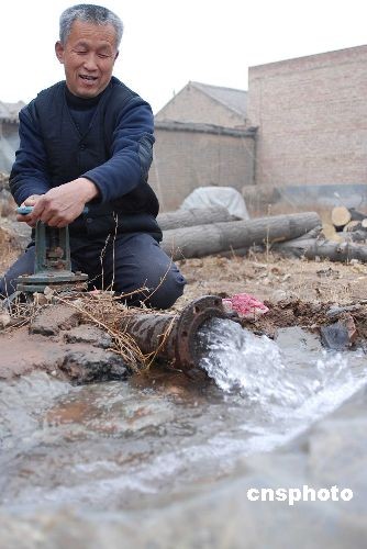 2009年2月4日,山西小麥產(chǎn)地運(yùn)城新絳縣農(nóng)民在全力以赴進(jìn)行抗旱工作。入冬后,山西省受旱面積達(dá)3274萬畝,其中山西小麥主產(chǎn)區(qū)運(yùn)城、臨汾兩地農(nóng)作物受旱面積達(dá)634萬畝,同時有106萬群眾及19萬頭牲畜出現(xiàn)飲水難問題。2月3日,山西省政府防汛抗旱指揮部已發(fā)布干旱橙色預(yù)警(Ⅱ級)并啟動響應(yīng)行動。山西省財政緊急下?lián)芸购蒂Y金1000萬元。中新社發(fā) 高新生 攝