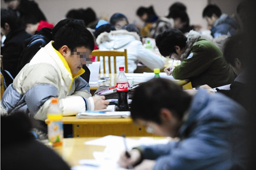 接連兩日,記者在該館自習(xí)室看到,眾多學(xué)子在伏案“奮筆疾書(shū)”,走近前去,才發(fā)覺(jué)他們大都是在專(zhuān)心致志地抄襲作業(yè),有的對(duì)著一張復(fù)印的政治試卷猛抄,有的摁著一本練習(xí)冊(cè)狂抄……從年齡看,以中學(xué)生居多,也有不少小學(xué)生。