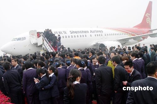 2月8日,河南鄭州至臺(tái)北首個(gè)空中直航于此間正式開通。當(dāng)日,滿載著一百三十余名乘客的深航銀川號(hào)B—5378航班從鄭州新鄭國(guó)際機(jī)場(chǎng)起飛,兩個(gè)半小時(shí)后將抵達(dá)臺(tái)北桃園機(jī)場(chǎng)。較之以前的從鄭州飛到香港轉(zhuǎn)機(jī),可節(jié)約一半以上的時(shí)間。中新社發(fā) 李志全 攝