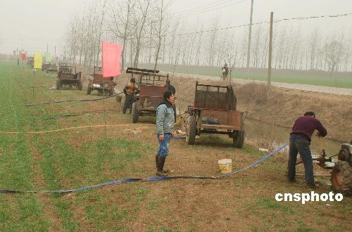 2月8日,安徽省鳳陽(yáng)縣府城鎮(zhèn)顧臺(tái)村的村民在田間抗旱保苗。由于青壯勞力外出務(wù)工,當(dāng)?shù)卦S多家庭勞力缺乏,面對(duì)歷史上罕見的嚴(yán)重旱情、小麥逐漸枯黃而一籌莫展。當(dāng)?shù)卣l(fā)動(dòng)村民組織“互幫互助隊(duì)”,幫助一些老弱病殘家庭的農(nóng)戶。中新社發(fā) 馬順龍 攝