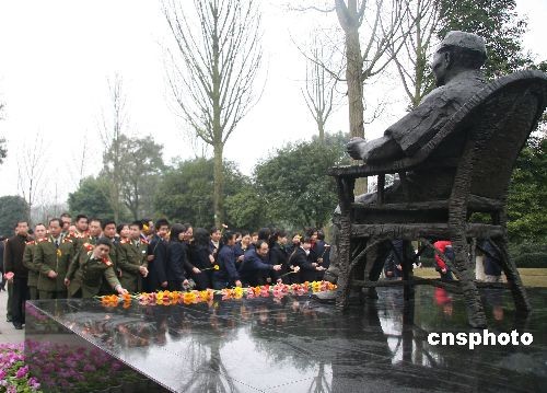 圖:四川廣安民眾為小平銅像獻(xiàn)花